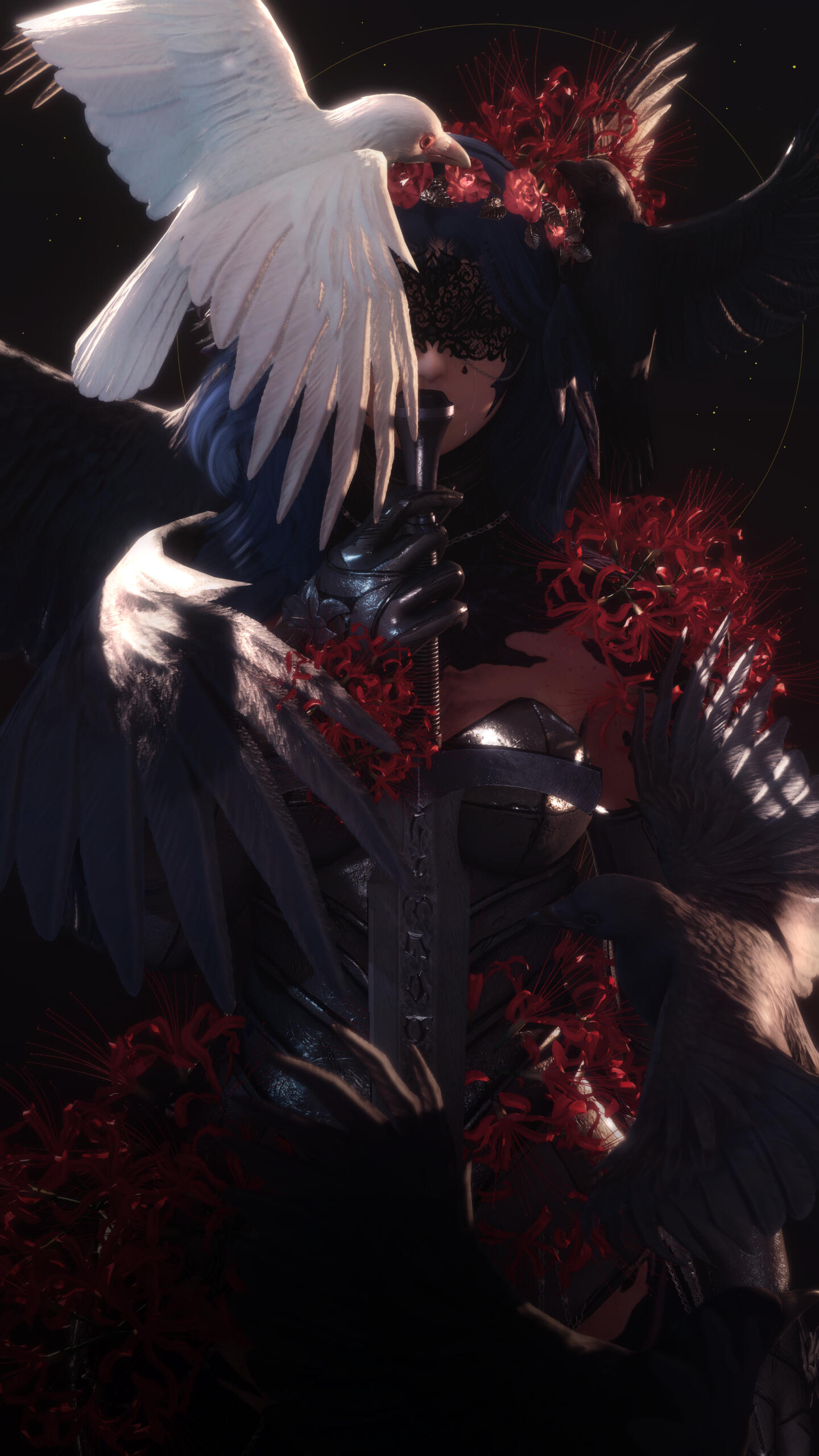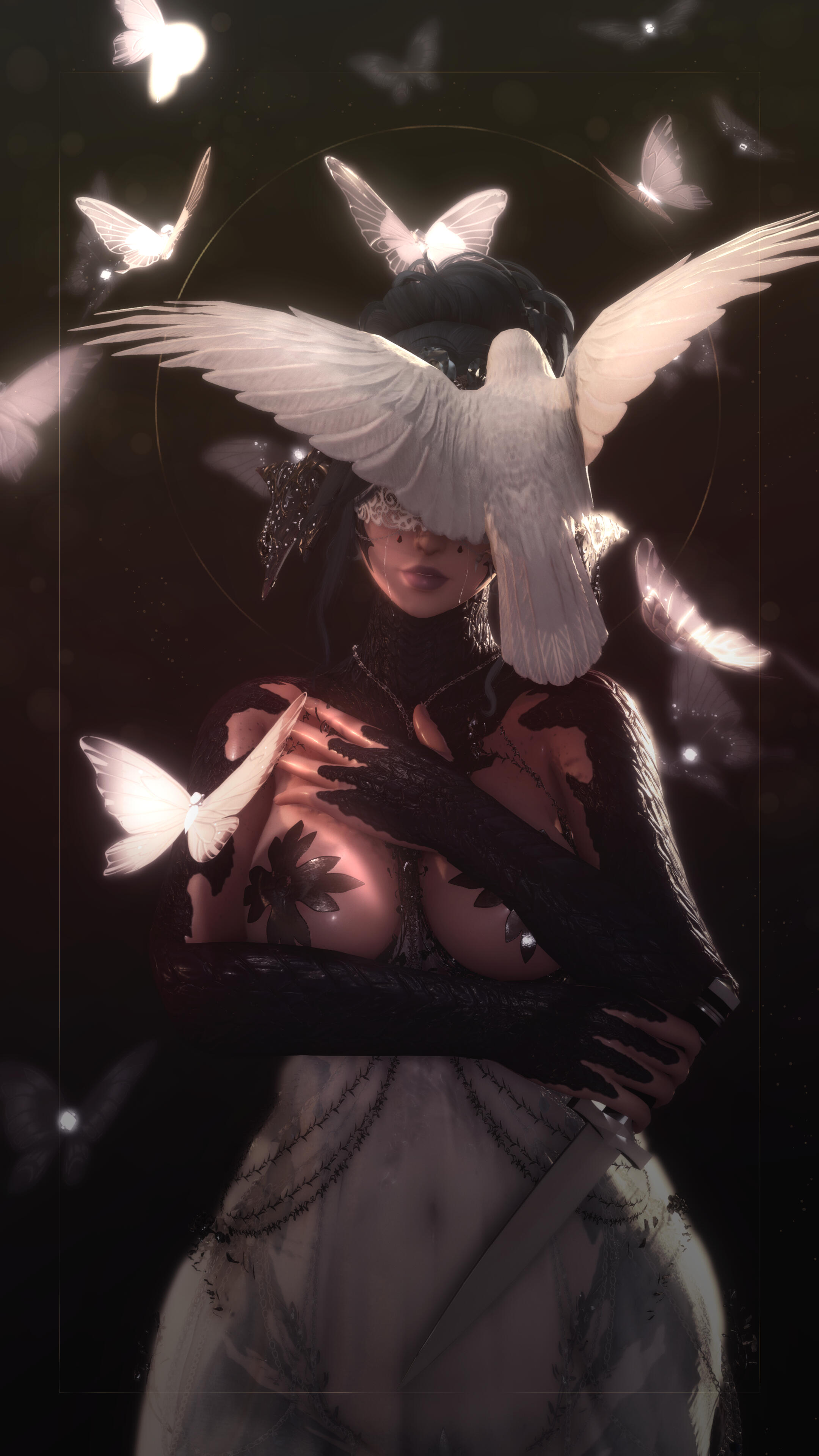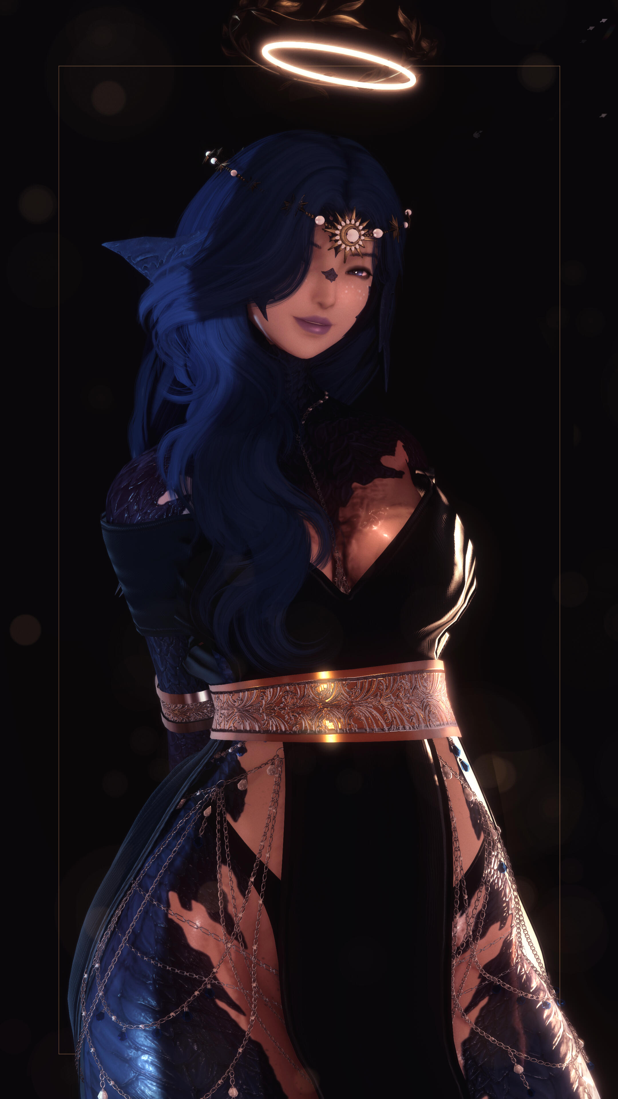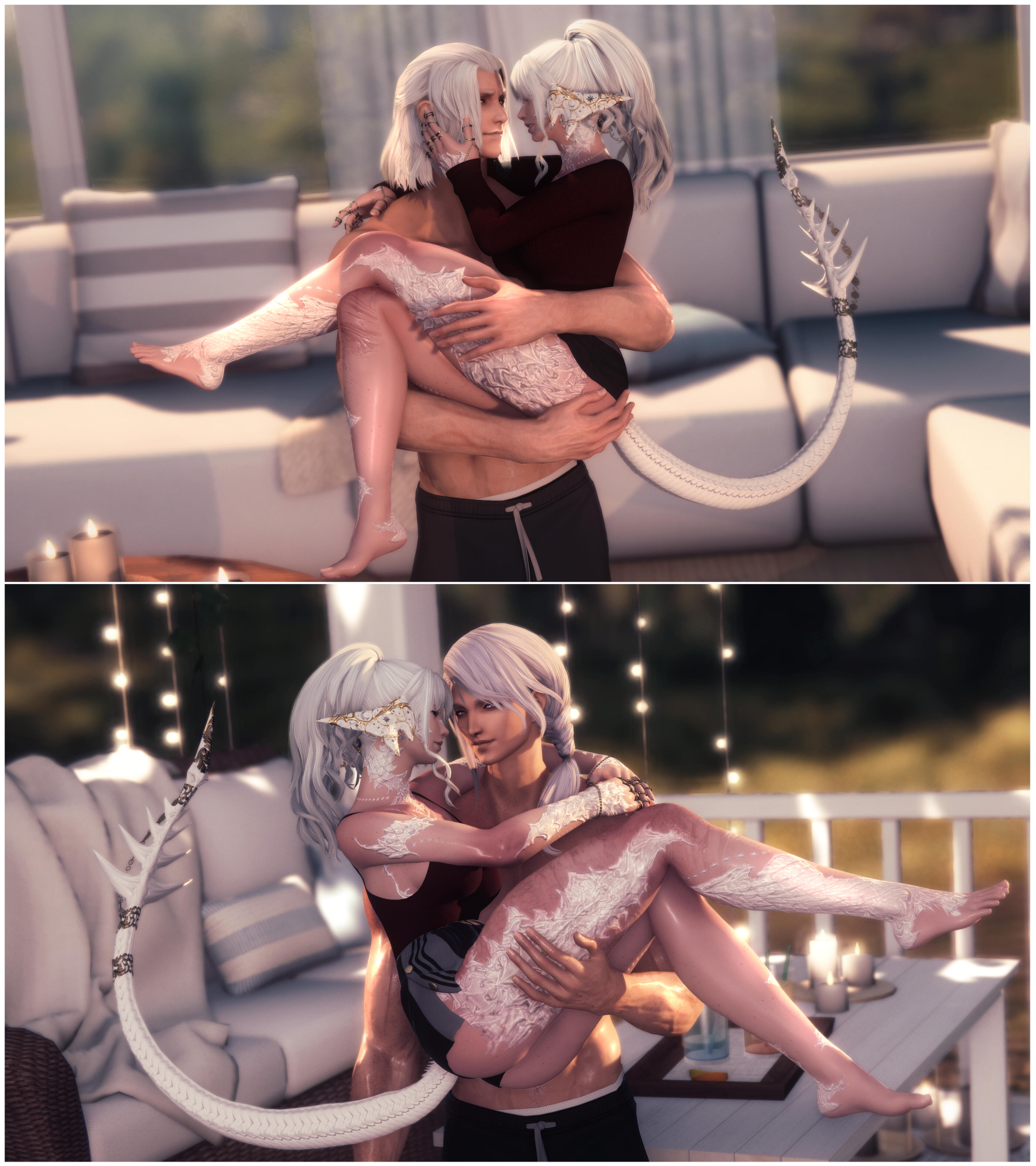 After investigating the Crystal Tower to search for the origins of the strange voice, Athena soon found herself traversing between worlds, and found herself on the First.Suffering with the plight from the Lightwardens, the Crystal Exarch pleads with the Warrior of Light to help them save the First, and Athena agreed. Reunited with her friends, Athena travelled the First to slay the Lightwardens; absorbing the Light within herself to prevent anyone else becoming the next Lightwarden, praying that her Blessing of Light continues to protect her own being from potential corruption.Their plans take an interesting twist when the Ascian, Emet-Selch, introduced himself and offered a proposition of co-operation. Ever since that introduction, Athena felt a strange, magnetic pull towards the Ascian that she couldn't explain. Determined to not let this strange feeling distract her, Athena pushed it back as best as she could, but it didn't help when Emet-Selch started showing up to her alone during her downtime.Regardless, Athena pushed on to rid the First of the Lightwardens, whilst subconsciously drifting closer to her enemy. Their meetings became more regular, and Athena slowly found herself tolerating the company of the Ascian more as the time went on. As she absorbed more of the Light, subtle changes began to appear on Athena's body - her deep sapphire eyes began to lighten, her aether became more corrupted, and in the eyes of Emet-Selch, her familiar soul colour began to become muted.Athena hid her fears, determined to press on and hide just how much the Light was affecting her. Shortly after returning from Maliak's Well, Athena collapsed on her way to her chambers, and was found by none other than Emet-Selch. Seeking an opportunity, the Ascian took Athena's unconscious body to his recreation of Amaurot.She would spend a few weeks here with the Ascian, and this pivotal moment would deepen their bond to lengths neither of them anticipated. During her time in his captivity, Athena spent her time exploring the place he brought her to, driven by the strong feeling in her soul that this place was very familiar. One particular shade amongst the populace would approach her and begin many conversations when she was walking through; spurred by the familiar colour of her soul. He introduced himself as Hythlodaeus, and Athena spent many of her walks through the phantom city in his company.As Athena spent more time with Emet-Selch in this strange city, Athena started to feel like she never wanted to leave, but she knew her duty would call her back eventually. During their time together, both of them realised they had fallen in love with one another, which pained Athena even more about leaving and continuing her duty, knowing that it would force them against one another once more.Eventually, Athena returned to continue the hunt for the last Lightwarden, which took her back to Eulmore to confront Vauthry. Before her climb up Mt.Gulg, Emet-Selch confronted her and offered a chance to join him - driven by the love he felt for her, but twisted by his drive to complete his duty. Athena offered him a chance to speak after she had slain the final Lightwarden, thinking that perhaps she could change his mind. Two souls linked by love, desperate to make ends meet, but twisted by fate.After the defeat of Vauthry, Athena's soul began to shatter; the light threatening to overtake her and transform her into the next Lightwarden, and betrayed by the very man she had given her heart to when he shot the Exarch down from helping her. Emet-Selch, disappointed by Athena's failure to contain the light, offered her respite in the place where their souls connected - in the depths of the Tempest, where she could complete the transformation away from the people she loved.Ryne attempted to reverse the effects as Athena collapsed into darkness.Athena was heartbroken when she awoke. Her body had changed even more from the effects of the Light overtaking her, despite Ryne's best attempts to reverse the effects. Her right eye remained lighter shade of blue, dots of white freckles littered her body, and her scales had grown to adorn more of her body. Feeling defeated and horrified by herself, Athena thought on Emet-Selch's offer, and made for the Tempest alone.The phantom Amaurot that she come to love no longer offered her comfort, instead the Warrior of Light was filled with despair from her upcoming transformation and her broken heart. Athena and Emet-Selch confront each other one final time before the Scions catch up; one final attempt to salvage their love from the destructuin of their duties, but as they were meant to be all along, they don their roles as Hero and Villain once again. Athena's journey through the recreation of the Final Days brought unimaginable turmoil within her soul.With the fusion of Ardbert bringing her the strength she needs, Athena defeated Emet-Selch. In the fleeting moment of his form dissolving for the Aetherial Sea, the weight of her actions finally bears down on Athena as she realizes just how much she has fallen in love with Emet-Selch. As he leaves, he bids Athena to remember him and his people, and those words spark the restoration of Azem's memories. Athena breaks down as she witnesses the only person who could help her understand completely fade away in her arms.As everyone celebrates the Ascian's defeat that night, Athena withdraws to her room where she grieves for the love she killed with her own hands.